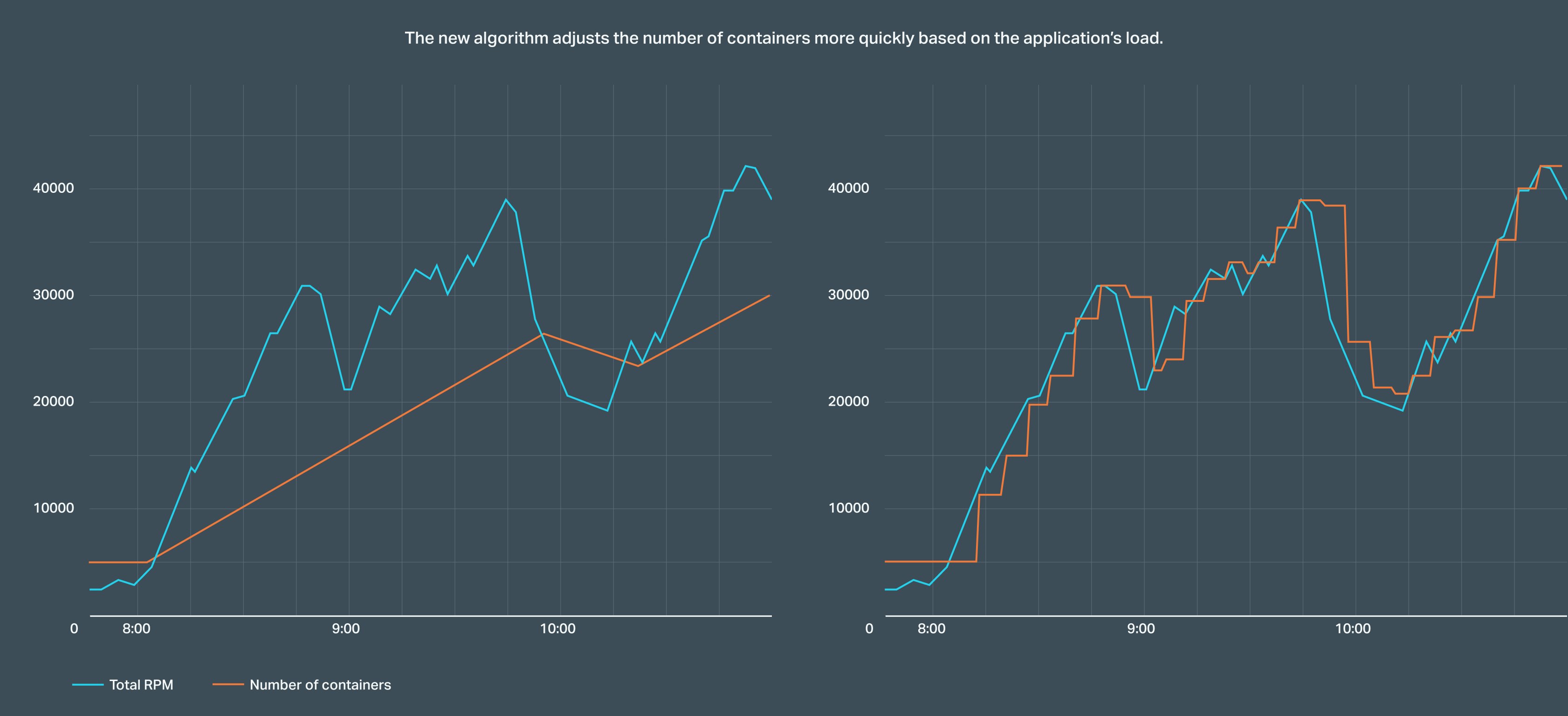Our improved algorithm ensures efficient scaling by adding or removing multiple containers simultaneously, preventing slow or insufficient adjustments. This guarantees a rapid response to sudden traffic surges while keeping costs under control.