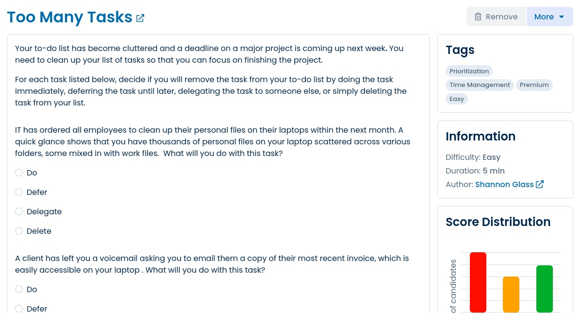 Write the hard skill test and its scorecard