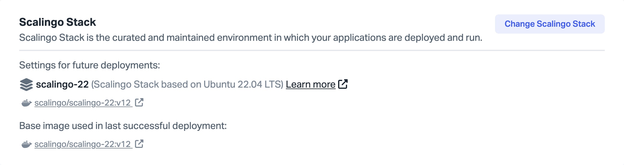 Scalingo provides a curated and maintained operating system image known as a stack, usually built upon a popular Linux distribution such as Ubuntu.