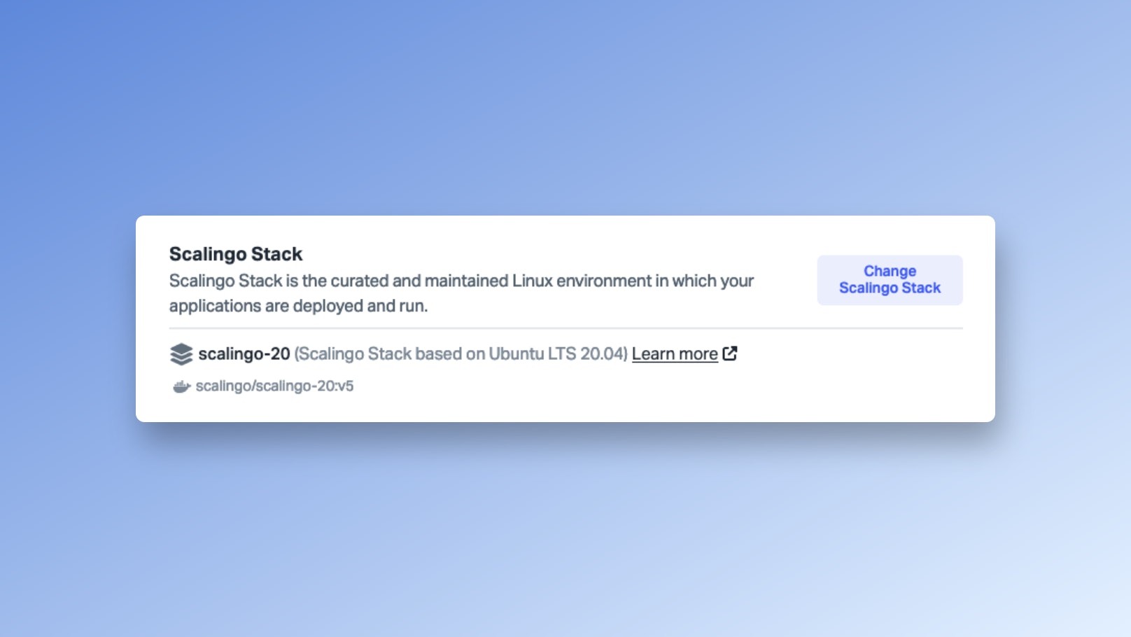 Scalingo provides a curated and maintained operating system image known as a Stack, usually built upon a popular Linux distribution such as Ubuntu.
