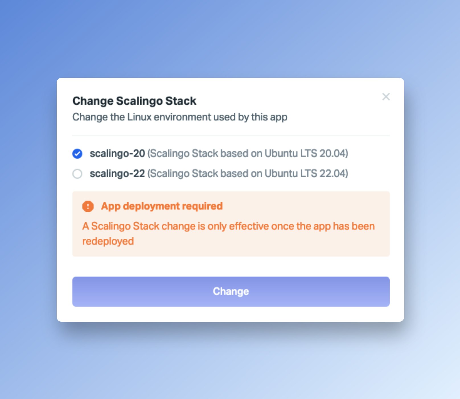 If you want to migrate your application using scalingo-20, we explain how to do so in the next section.