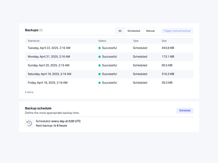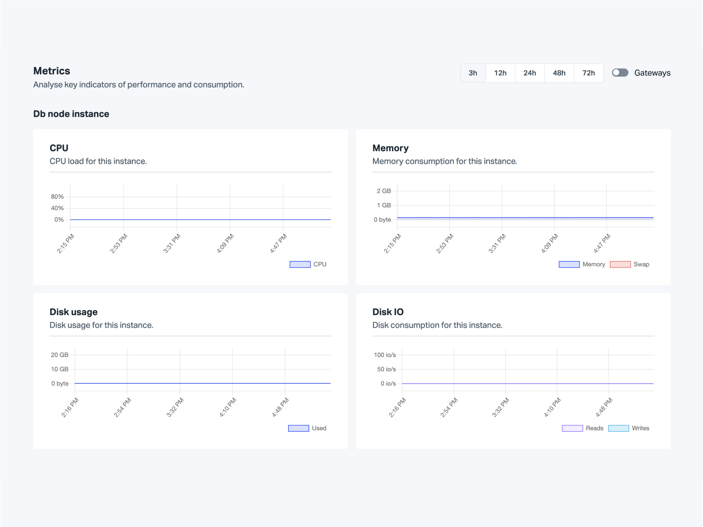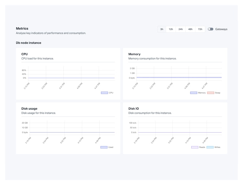 At the end of each month, we check the average amount of disk usage per hour. If this exceeds the amount allocated by the plan you have chosen, you will be billed for each additional GB-h at the following rates: