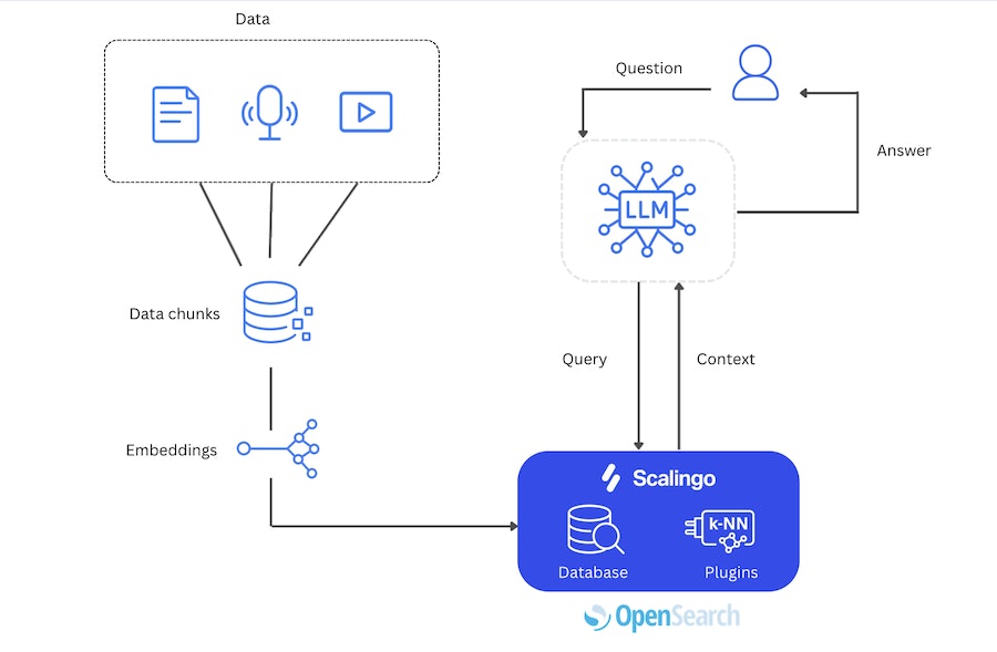Scalingo for OpenSearch® intègre le plugin k-NN, qui ajoute la prise en charge de la recherche vectorielle, une fonctionnalité essentielle pour les cas d’usage IA comme la recherche sémantique ou la génération augmentée par récupération (RAG).