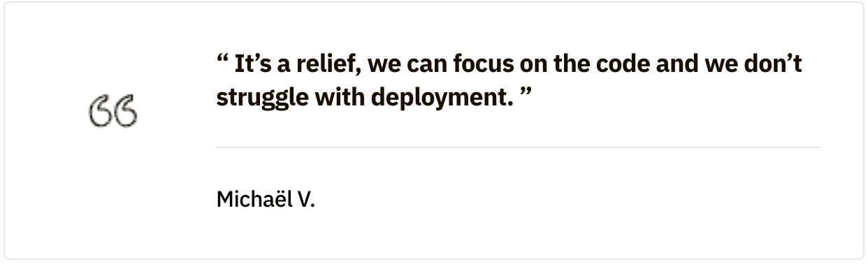 Avec 11 applications hébergées sur Scalingo depuis 6 ans d'utilisation, Michaël nous explique qu'il est soulagé par l'expérience PaaS de Scalingo et les fonctionnalités qui l'accompagnent.