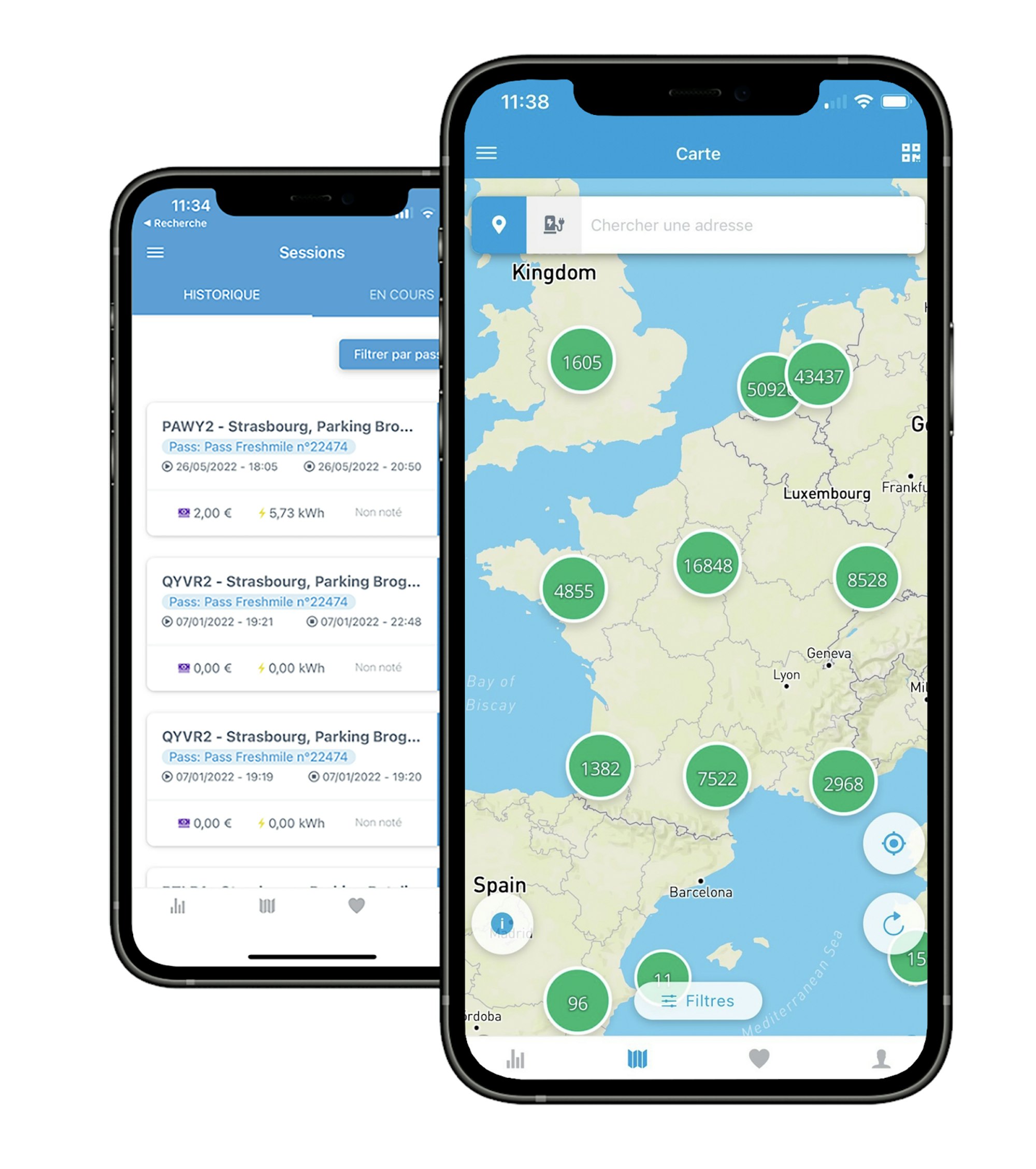 Freshmile fournit également une application mobile pour les conducteurs de VE, qui leur permet de localiser et d'accéder aux bornes de recharge, de consulter les informations sur la disponibilité et les prix en temps réel, et de payer les sessions de recharge.