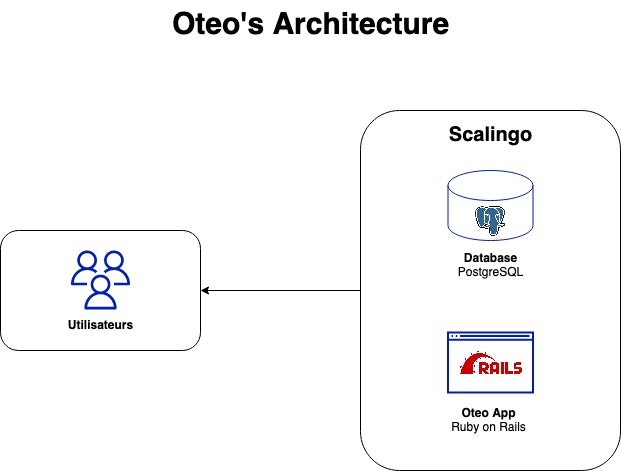 Sur le plan technique, Oteo est une application monolithique en Ruby on Rails avec une database en PostgreSQL, le tout est hébergé sur Scalingo.