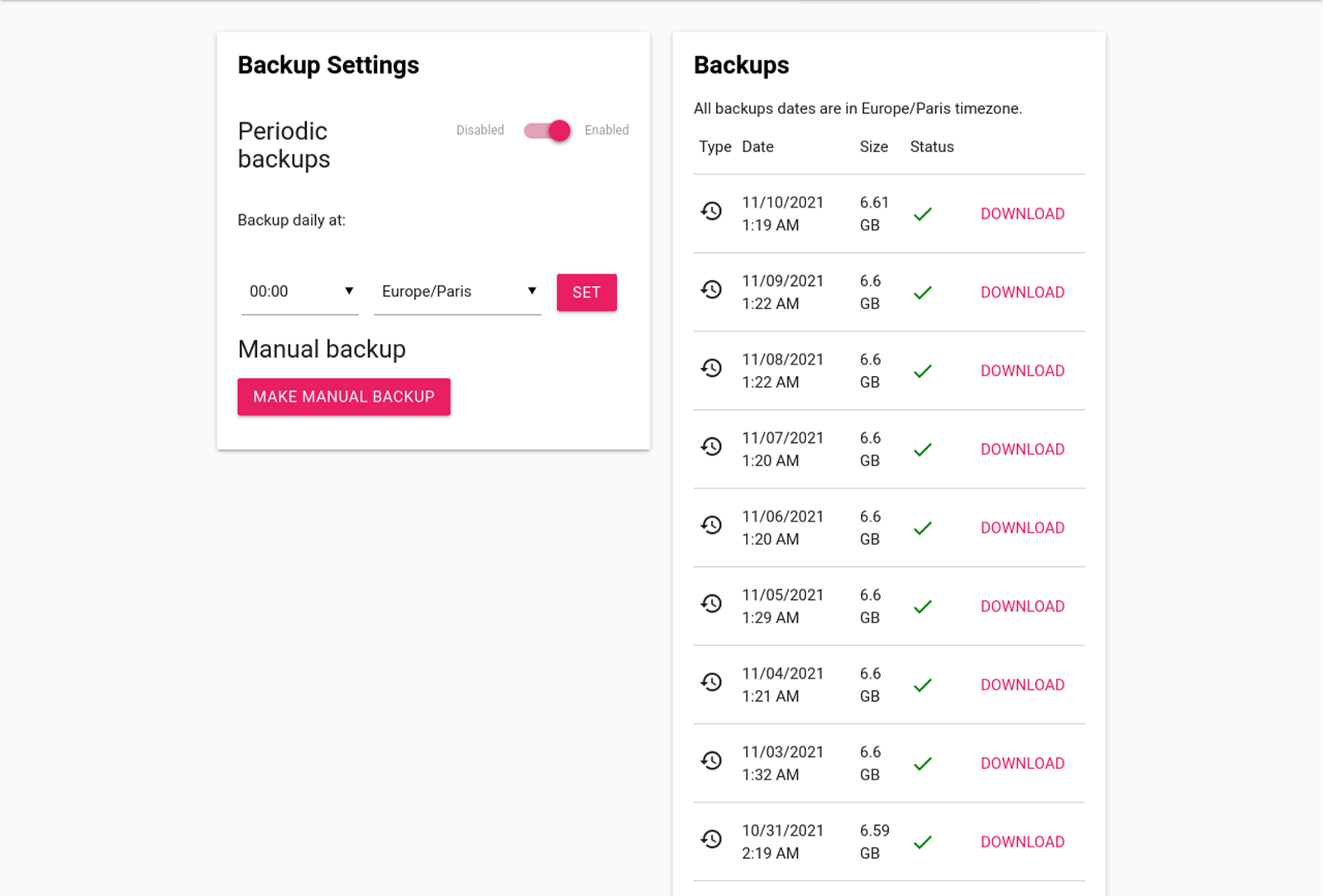 | Sauvegardes quotidiennes | ||