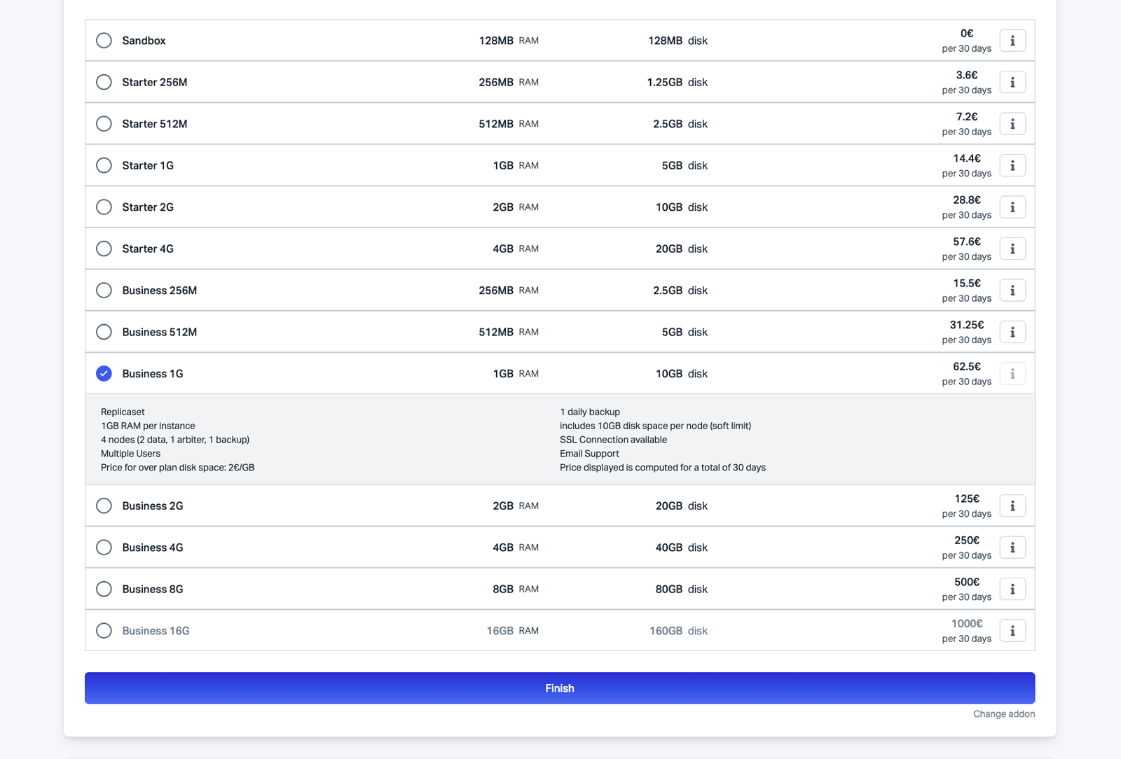 | Business 16G | 16 Go | 320 Go | 1,000.00 € |