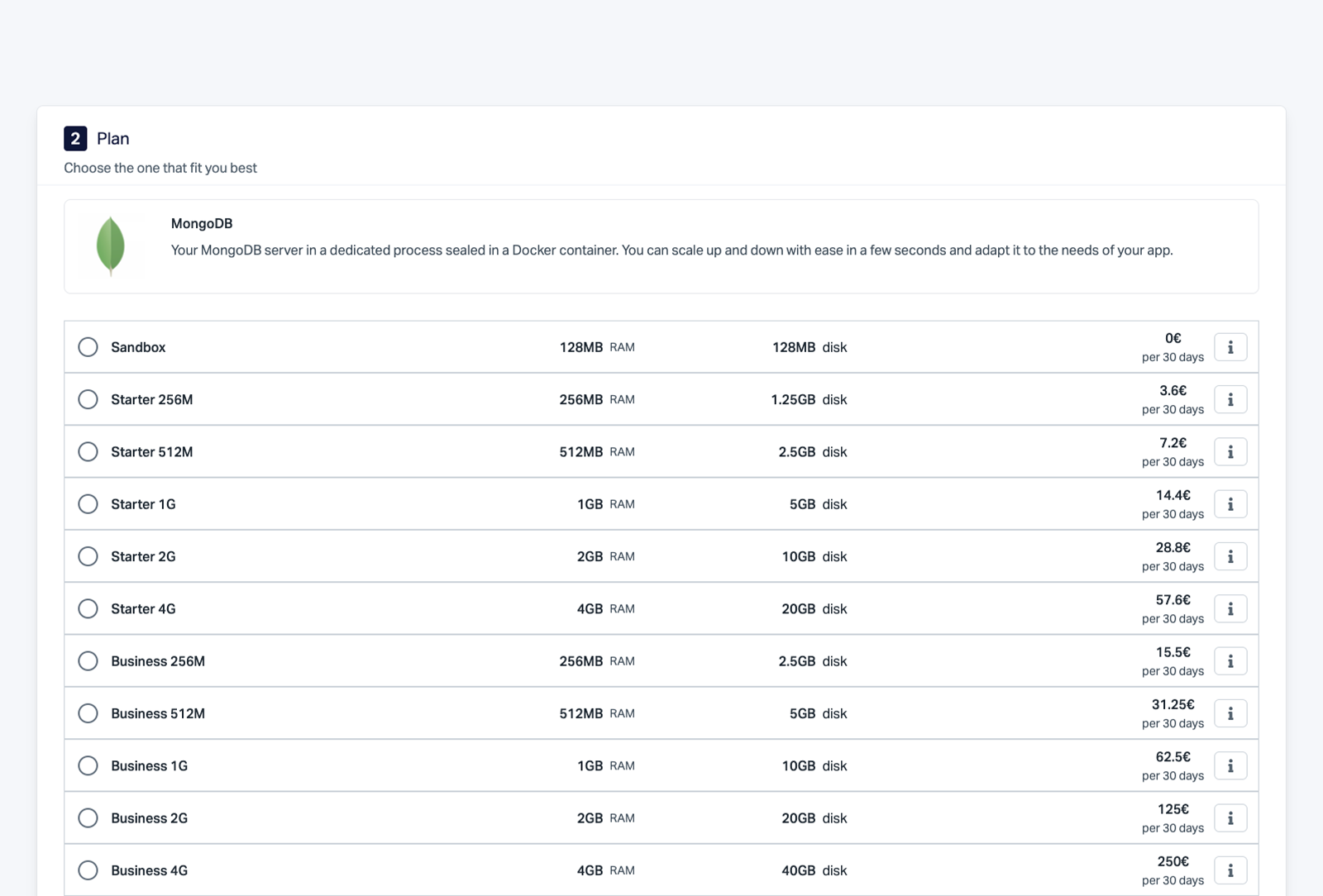 | Starter 256M | 256 Mo | 5 Go | 3.60 € |