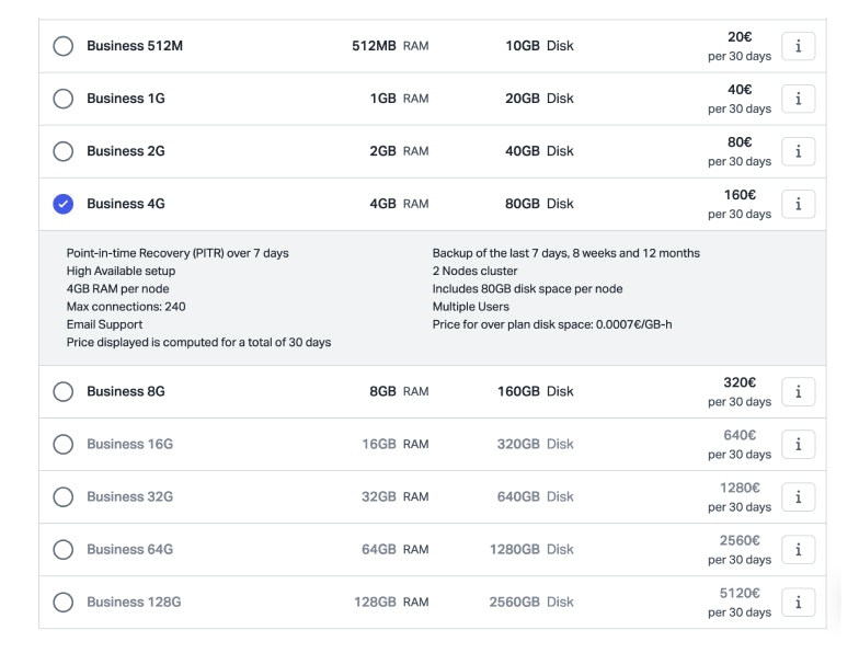 | Business 512M | 512 Mo | 10 Go | 30 | 20.00 € |