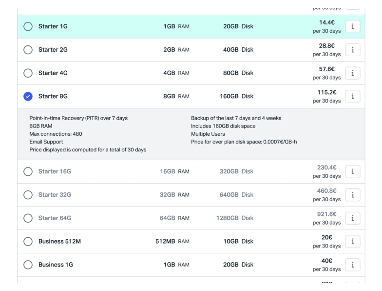 Le plan selectionné est accompagné d'un espace de stockage inclus (en Go). Dans la pratique, ce stockage inclus est calculé en Gigabyte-Heure (GB-h).